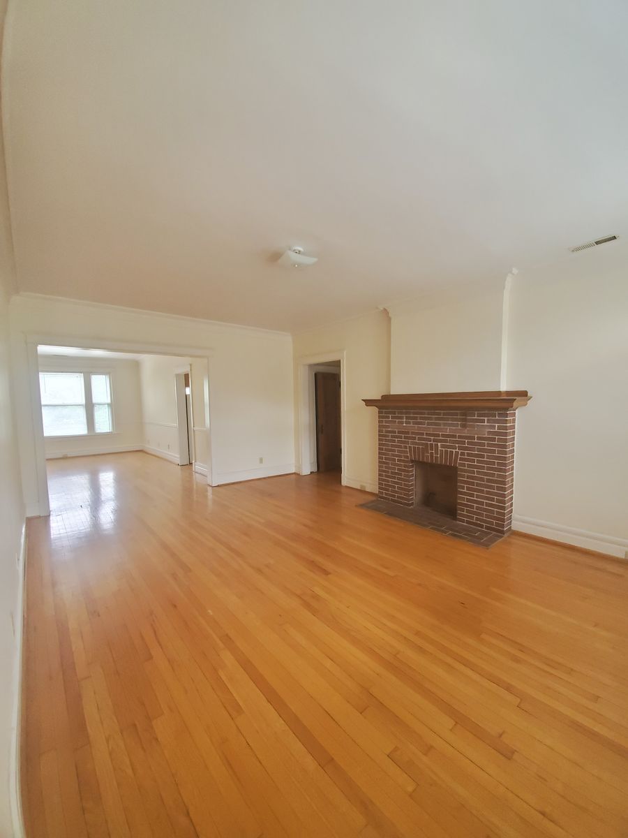 Beautiful 10 foot ceilings, large living room and dining room, decorative fireplace, large eat-in kitchen with new appliances and plenty of large wood cabinets.
